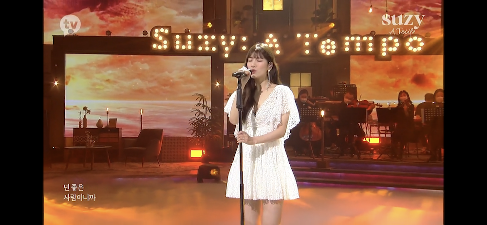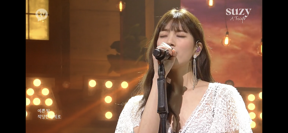 빨간 조명과 하얀 원피스를 입은 수지가 대비되어 더욱 빛났던 무대다.