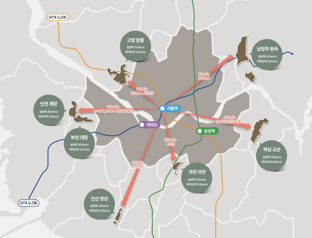 서울도심까지 30분대로 출퇴근이 가능하도록 지하철 등 대중교통 투자를 확대한다.