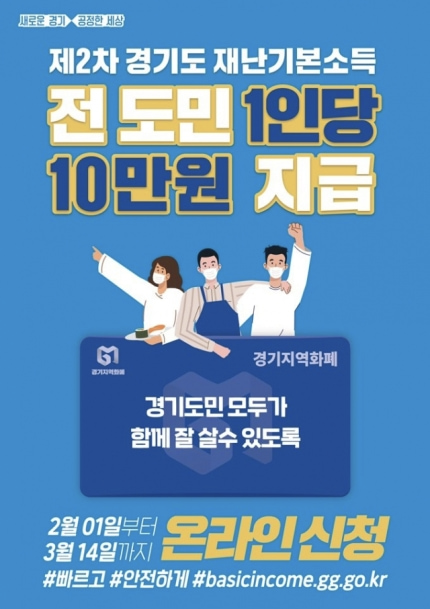 경기도에 주소를 둔 경기도민이라면 제2차 경기도 재난기본소득을 지급받을 수 있다.