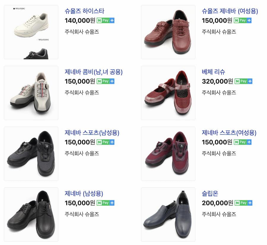 남녀공용, 여성용, 슬립온, 제네바 콤비, 베체리슈, 스포츠 신발까지 다양한 종류가 있다.