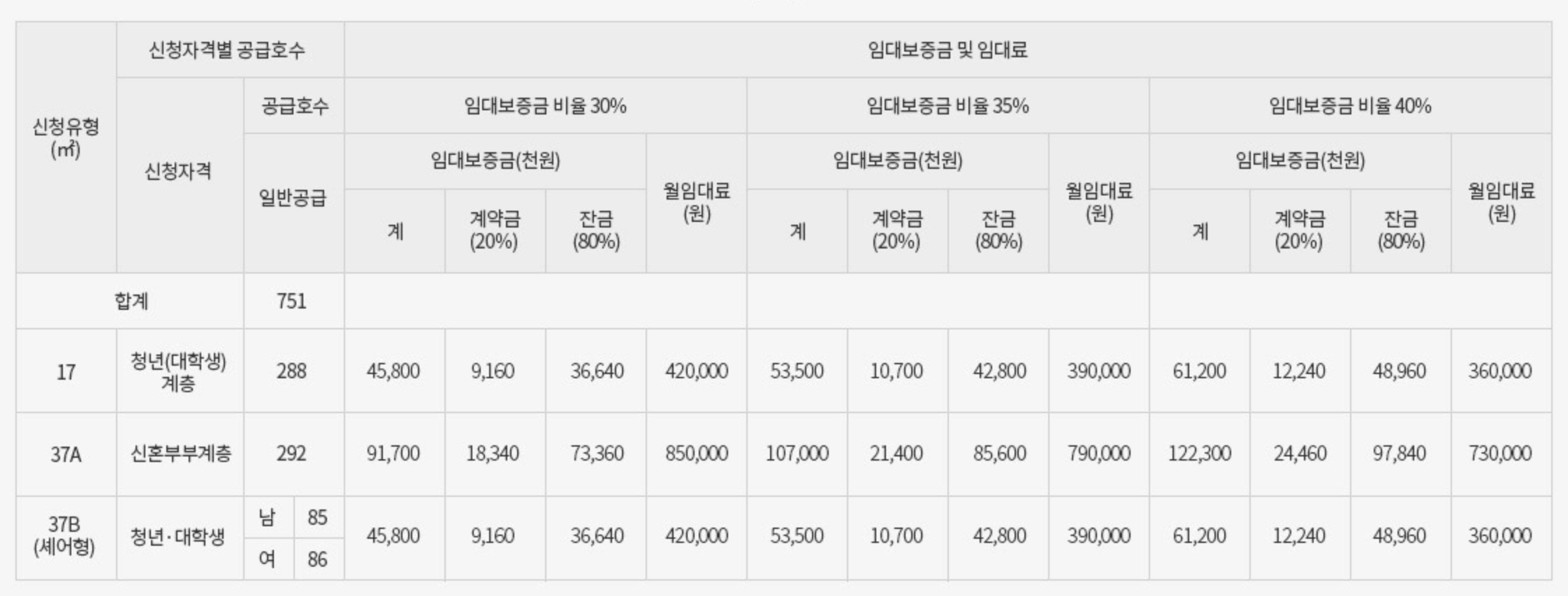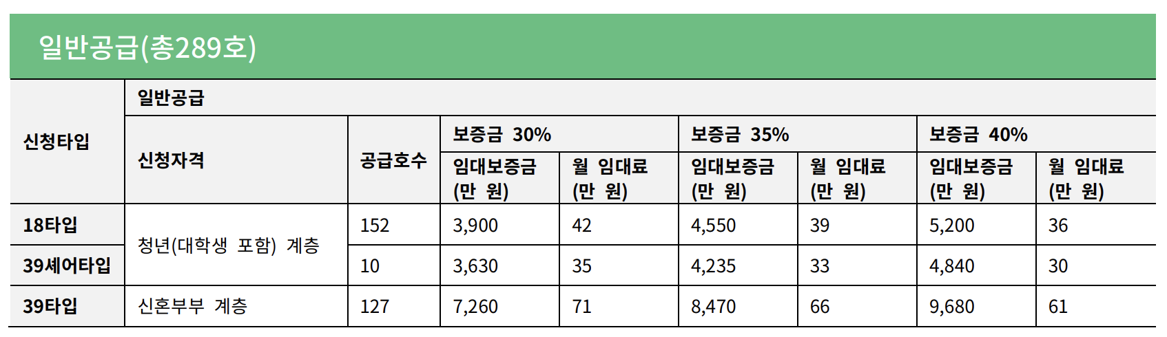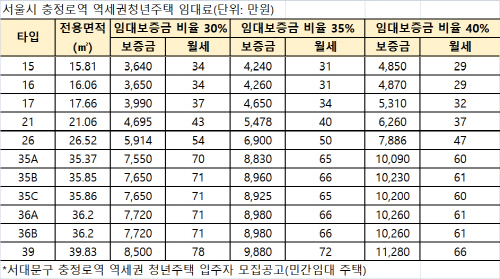 출처 : 서울시 주거 포털 및 청년 주택 모집 사이트