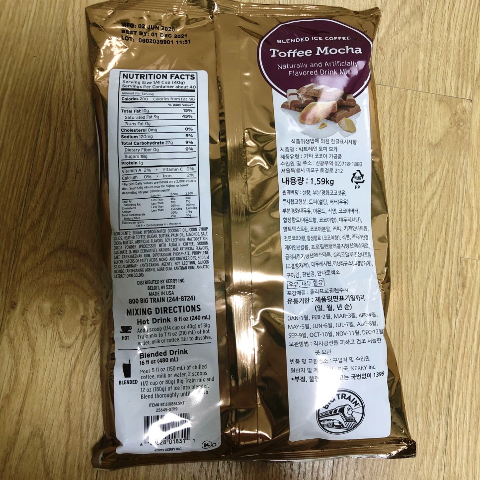 이디야에서 토피넛라떼 만들때 사용하고 있다는 빅트레인 히피모카 파우더.