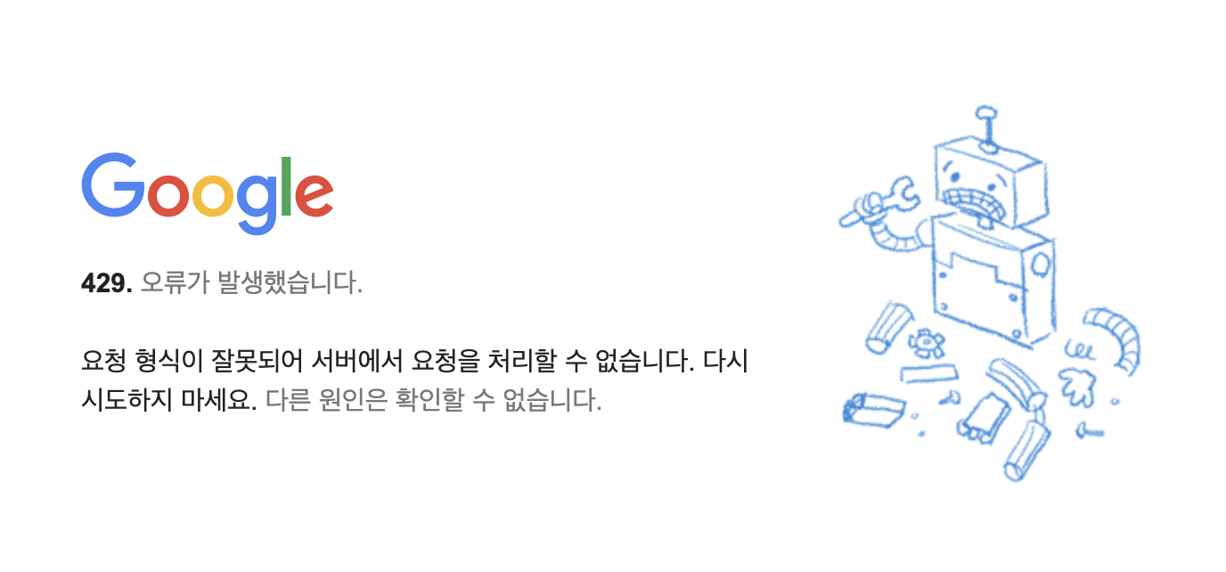 요청 형식이 잘못되어 서버에서 요청을 처리할 수 없습니다. 닫시 시도하지 마세요. 다른 원인은 확인 할 수 없습니다.