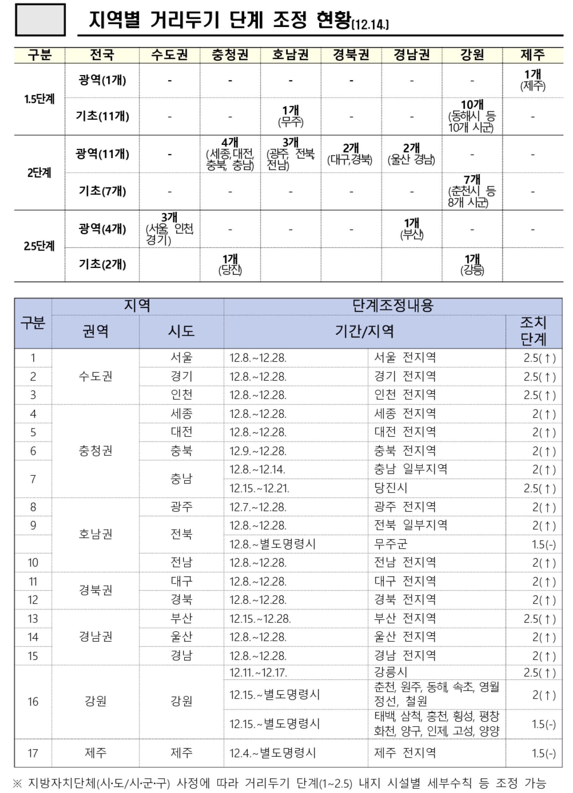 사회적 거리두기 단계별 조치 지역별 사회적 거리두기 단계 현황 (12.14 기준) 지역별 거리두기 단계 조정 현황 memory-log.tistory.com