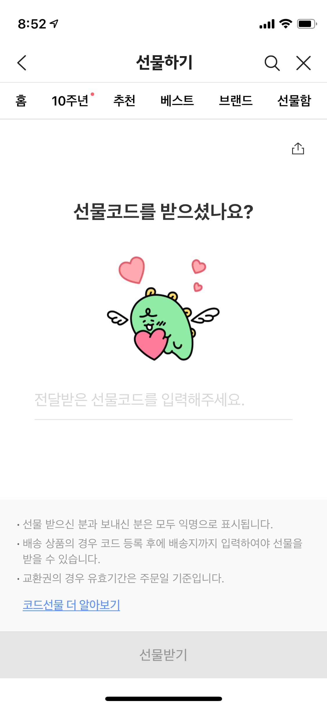 카카오톡의 숨은 꿀기능 선물코드를 통해 익명 선물을 잘 사용해보자.