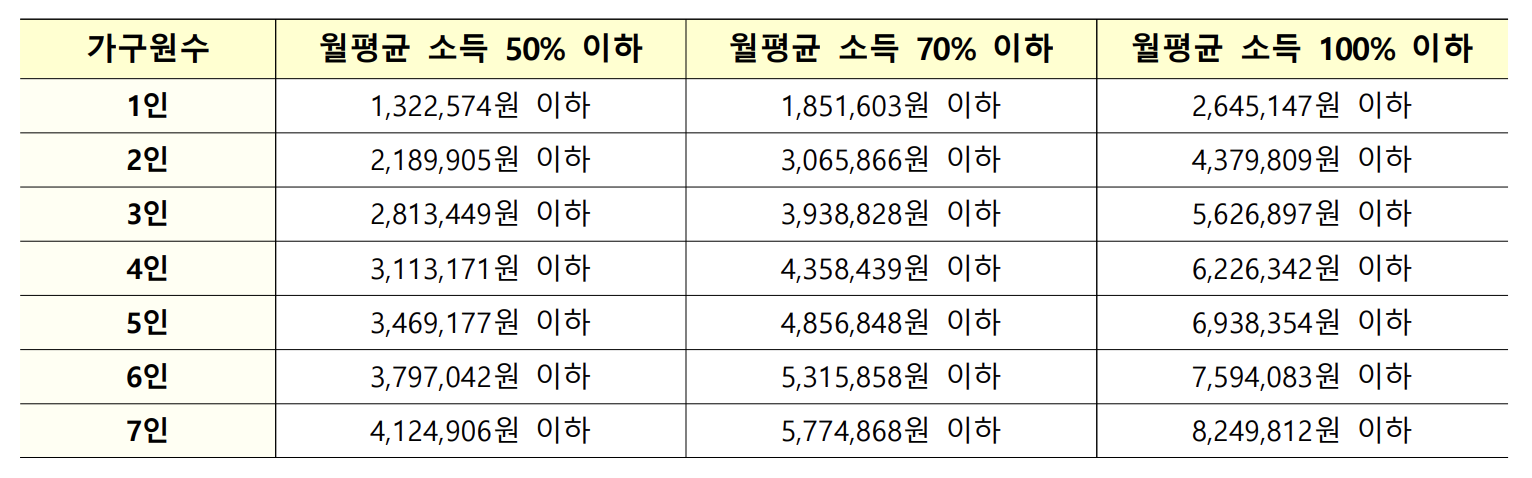 소득기준 (전년도 도시근로자 가구당 월평균소득)