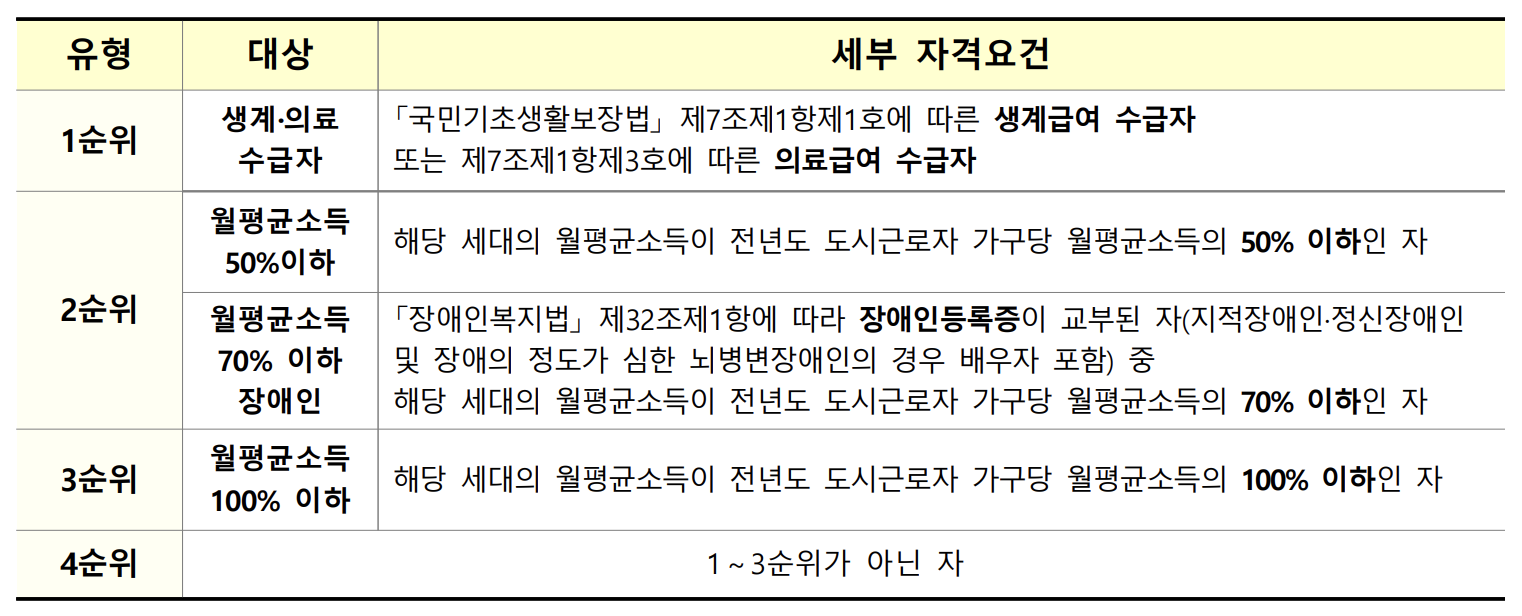 순위별 세부 자격 요건을 꼼꼼히 살펴보고 신청해보자.