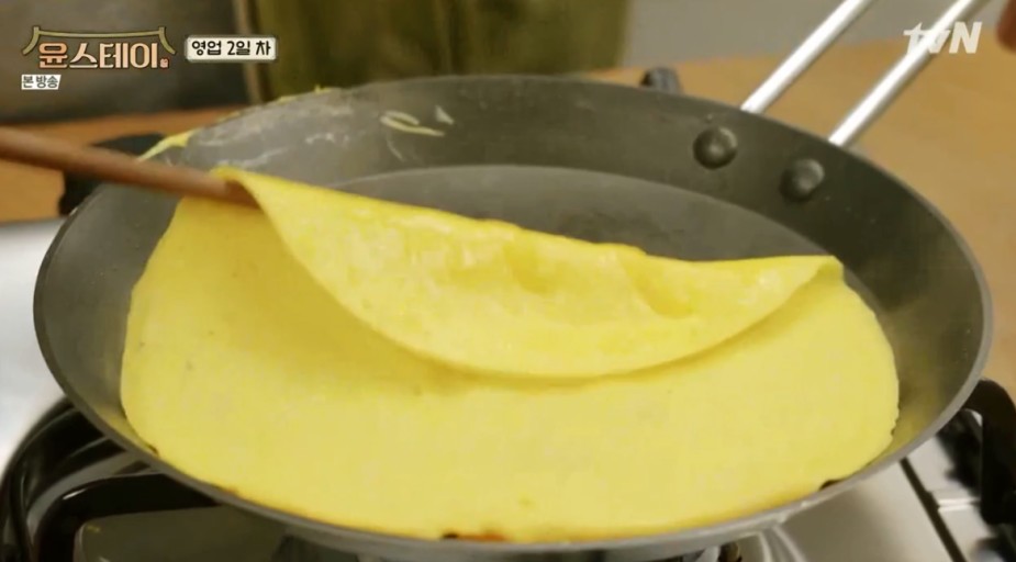 윤스테이에서 정유미가 얇디 얇은 지단을 성공적으로 완성해내던 그 순간, 눈길을 사로잡은 후라이팬