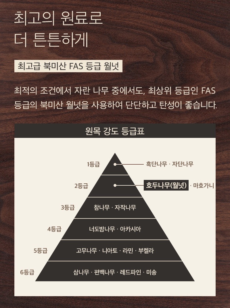 월넛 목재의 고급스러운 느낌을 줄수 있어 인기를 끌고 있다.