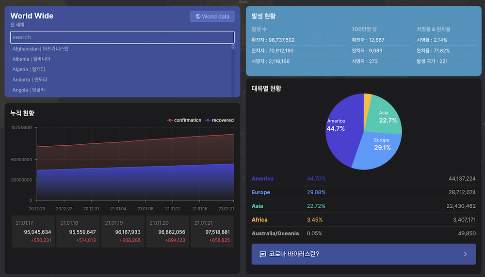 covid-19 world real-time graph, covid-19 status by country, 코로나 전세계 실시간 그래프, 나라별 코로나 현황