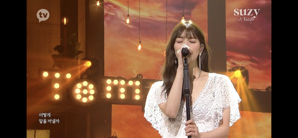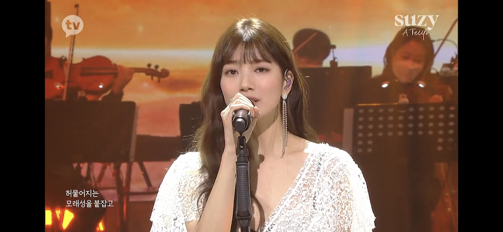 빨간 조명과 하얀 원피스를 입은 수지가 대비되어 더욱 빛났던 무대다.