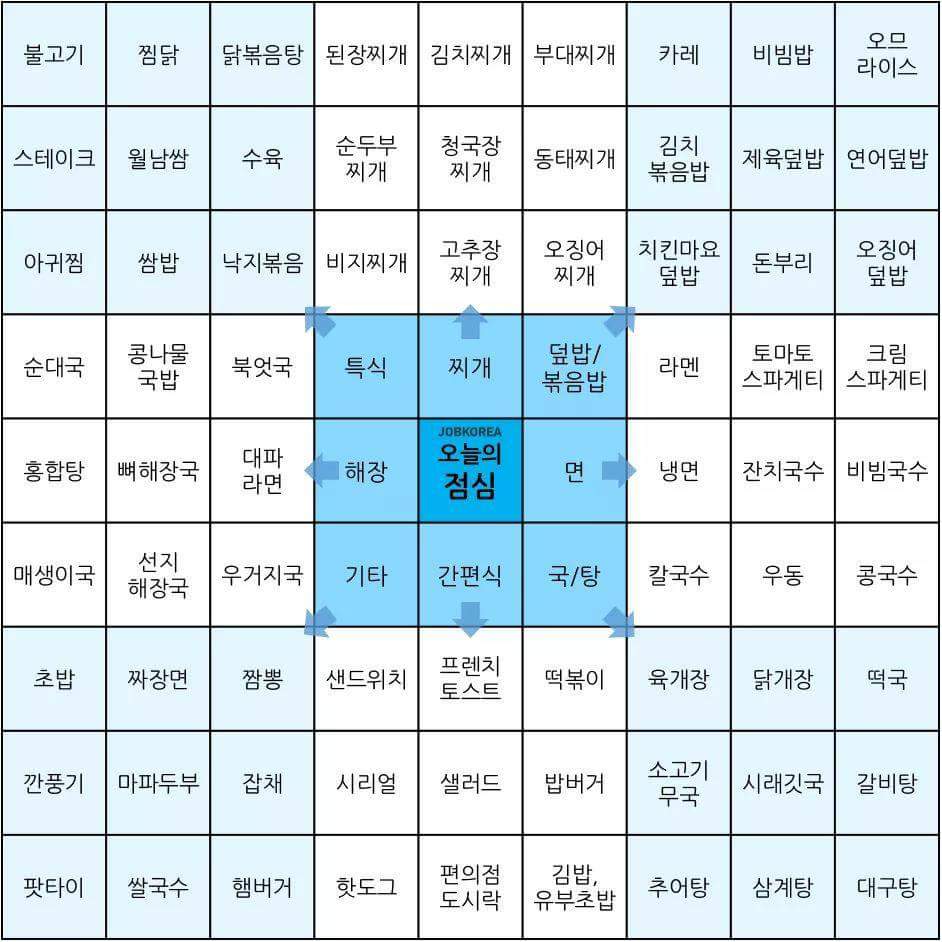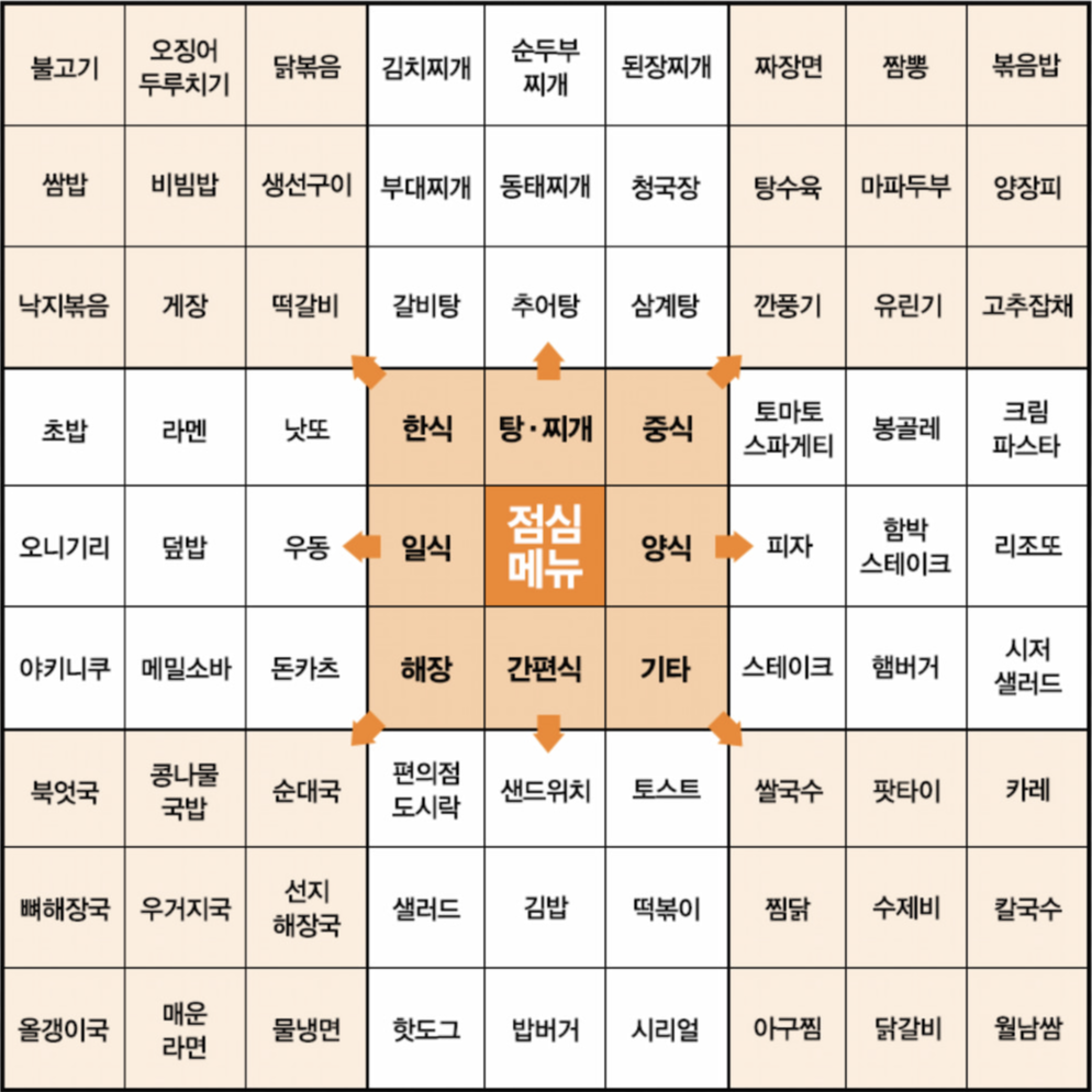 선택하기 힘든 메뉴 결정, 고민을 조금 줄여줄 메뉴 고르기 지도를 활용해서 점심 메뉴를 골라보자.