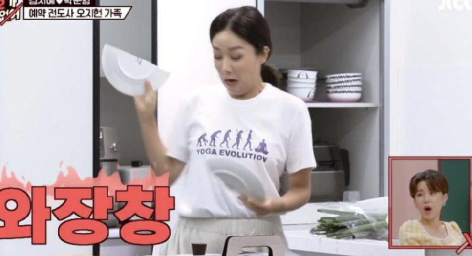 이날 김지혜는 접시를 꺼내던 중 깨뜨렸고, 바닥은 산산조각난 유리조각으로 채워졌다.