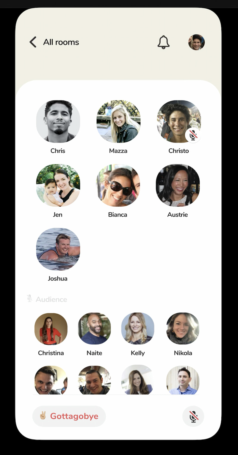 처음 선택한 카테고리인 관심사 위주로 방이 열리고 팔로우 기반으로 음성 채팅이 가능하다. 팔로우 하는 것에 따라서 나에게 보이는 채팅이 달라지므로 팔로우 대상 선택도 중요하다.