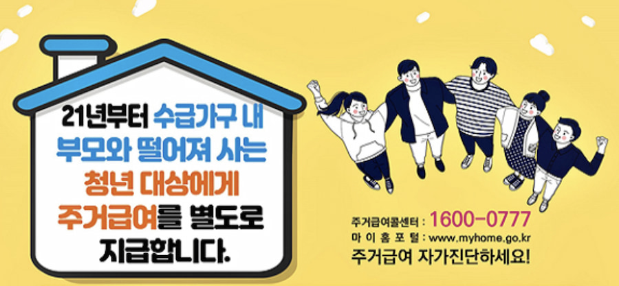 - 청년 주거급여 : 부모(청주 2인) : 월 18.3만원, 자녀(서울 1인) : 월 31.0만원