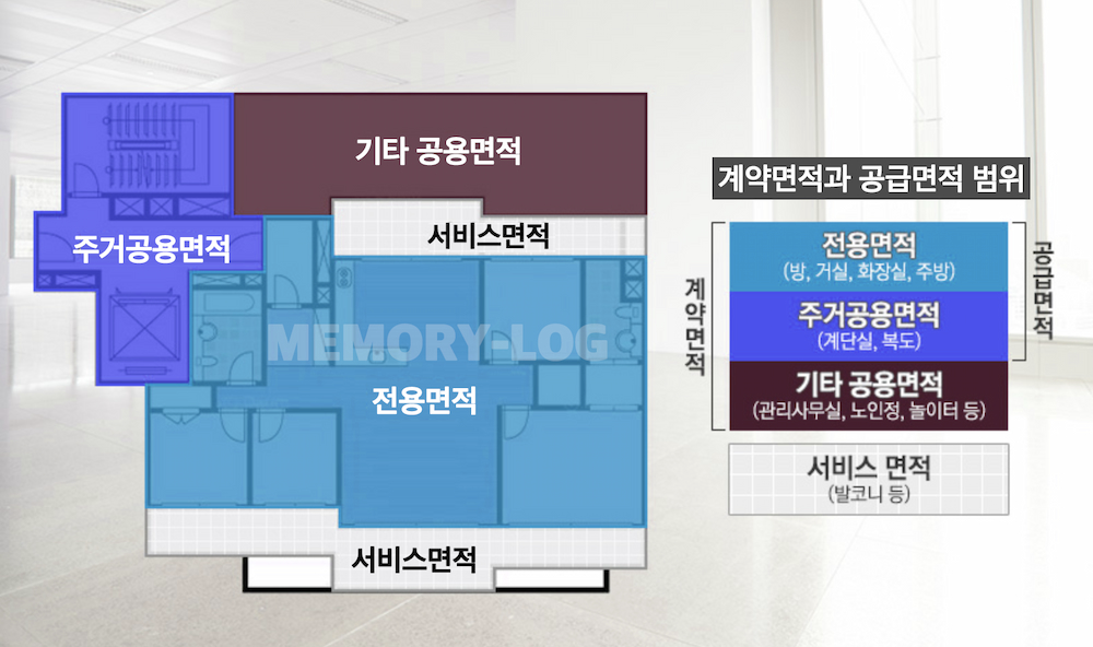 전용면적, 서비스면적, 주거공용면적, 기타공용면적
