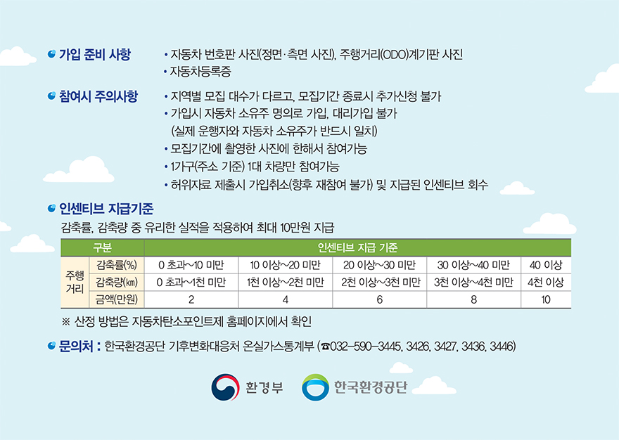 - 참여혜택 : 주행거리 감축 실적에 따라 최대 10만원 지급
