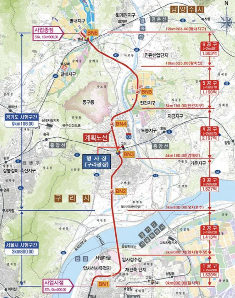 전체노선은 2022년 개통될 예정으로 총 1조2806억원의 사업비가 투입된다고 한다.