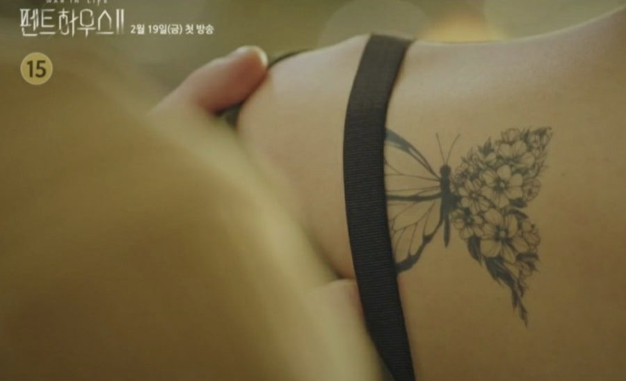 펜트하우스 1편에서 나온 등에 나비문신을 한 여성이 나애교일 것으로 추측되고 있다.
