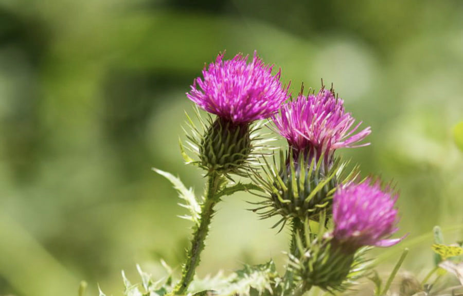 엉겅퀴는 전체가 털로 뒤덮여져 있는 여러해살이 풀이다. 국화과 다년생 식물로서 ‘가시나물’로도 불리고 있다. 예로 부터 피를 맑게 한다는 양혈, 지혈, 소염, 이뇨 효과가 있는 것으로 알려져 있다.