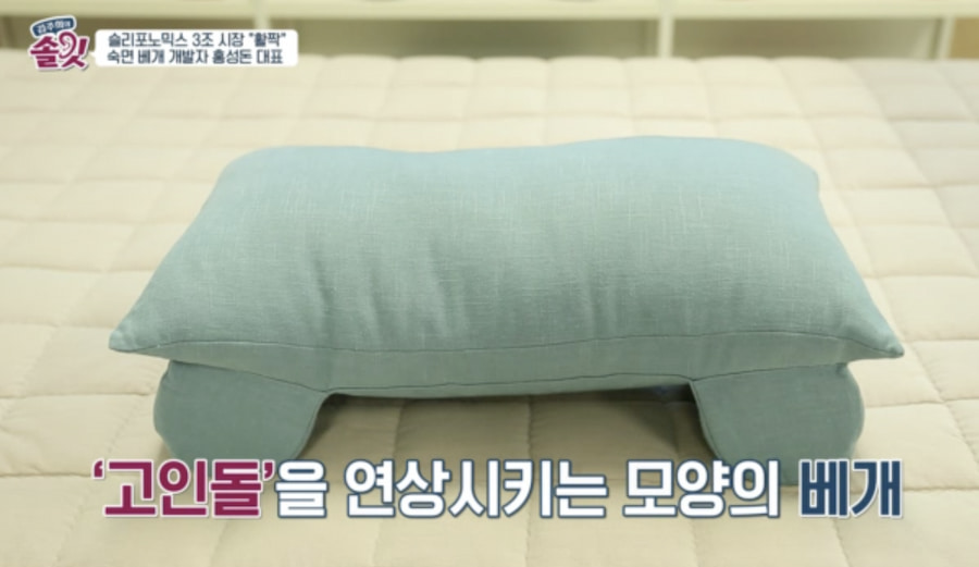 김주희의 솔깃에 나온 홍성돈 대표가 특허를 받은 숙면 베개를 소개했다.