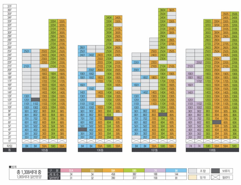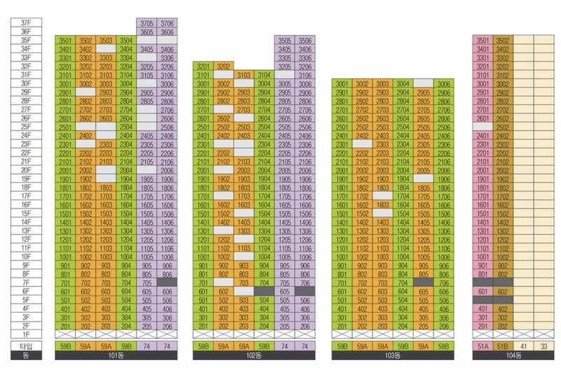 - 건축규모 : 지하 3층 ~ 지상 최고 37층, 총 8개동