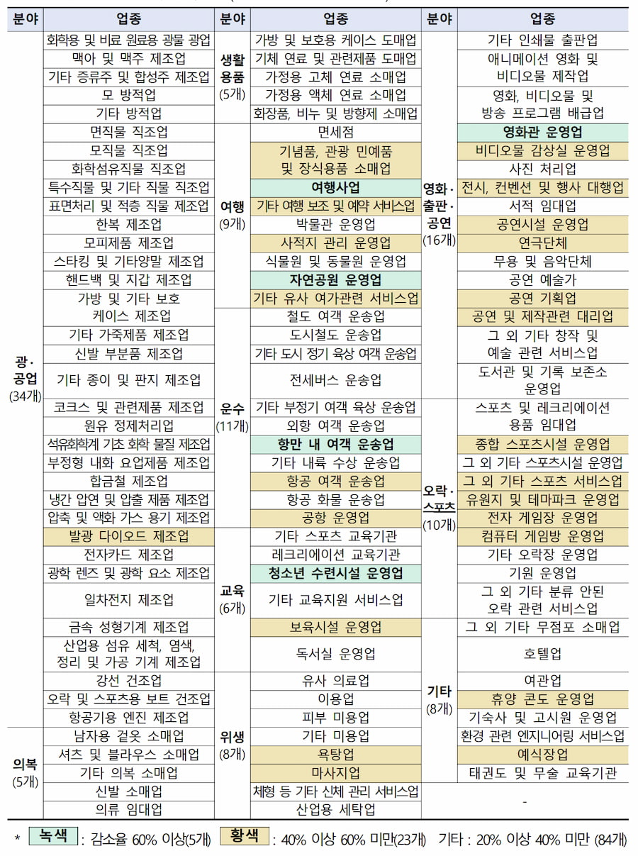 업종별 상세한 기준과 유의사항에 대한 정보는 첨부된 PDF 파일을 참고 바란다.