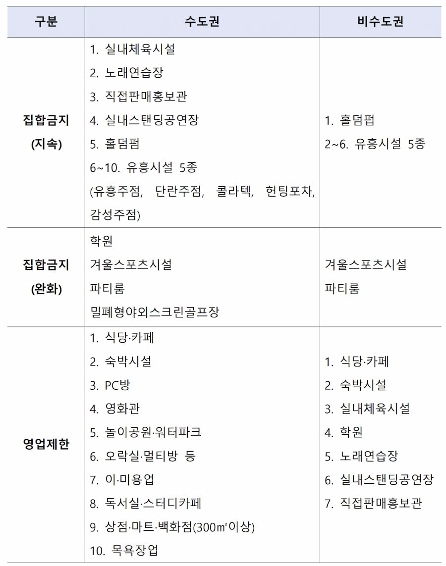 유흥업소(5종), 홀덤펍, 노래연습장, 실내체육시설, 직접판매홍보관, 실내스탠딩공연장 | 유흥업소(5종), 홀덤펍 |