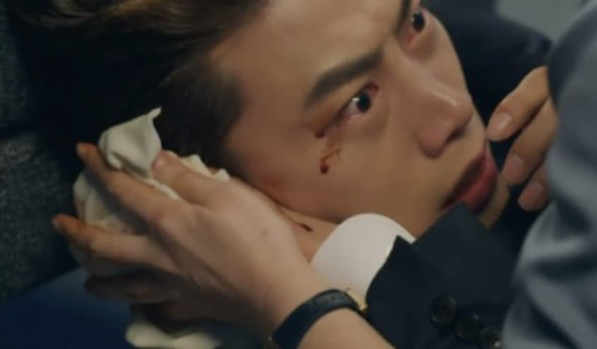 그때 장한서의 총구가 빈센조의 왼쪽 가슴을 쏘고 빈센조가 쓰러진다.