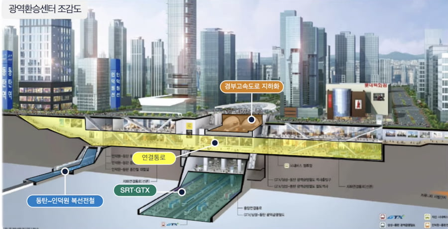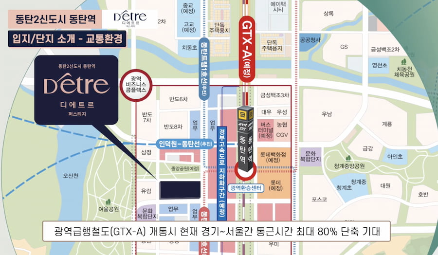 SRT, GTX-A, 인덕원선, 동탄 트램이 교차 예정인 쿼드러플 교통망의 중심지로 동탄 ~ 수서역 15분대 진입해서 서울 및 경기 남부권 광역 접근성 향상이 기대된다.