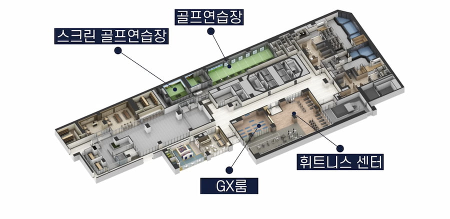 골프연습장, 스크린 골프연습장, GX룸, 휘트니스 센터로 사계절 내내 체계적인 연습이 가능하다.