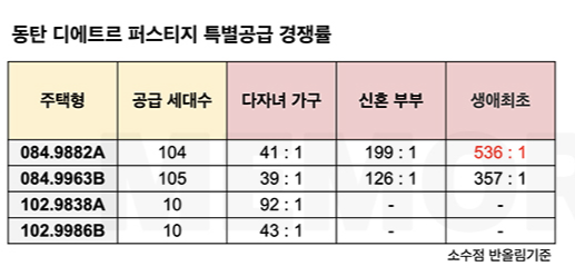 다자녀, 신혼부부, 생애최초 특별 공급 경쟁률