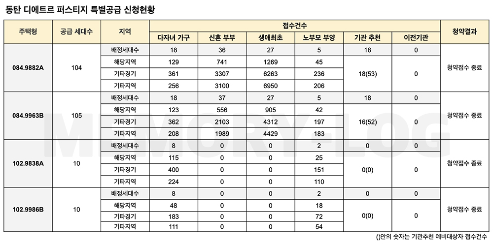 동탄 디에트르 퍼스티지 특별공급 신청현황