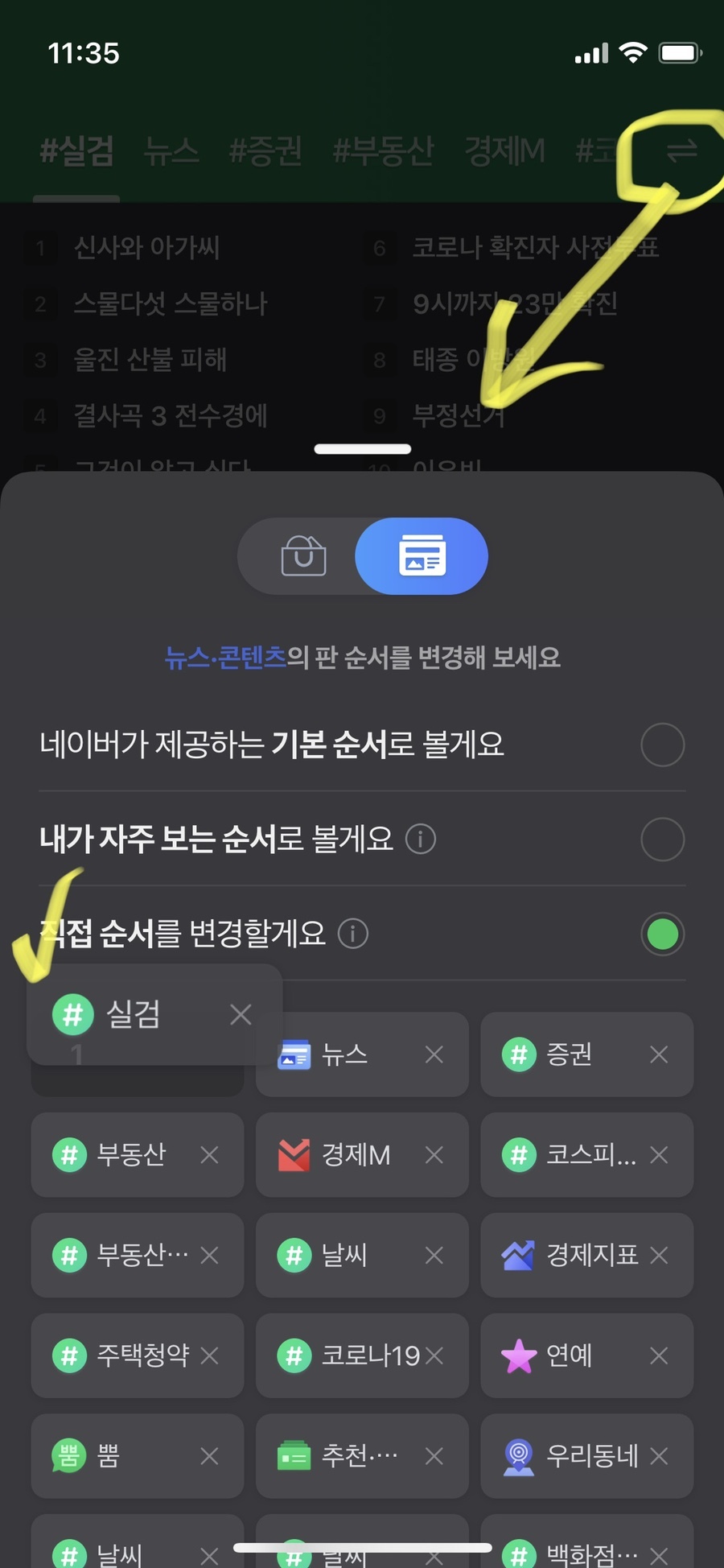 네이버 앱에 실검 추가하는 방법