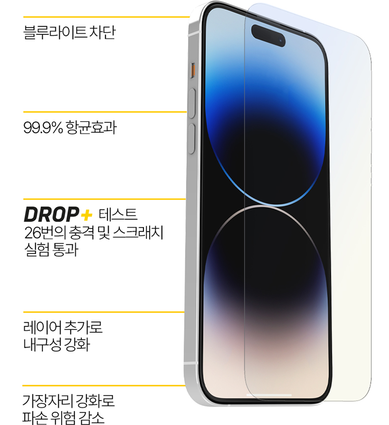 오터박스의 독점 항균 기술로 강화 유리 전체적인 범위에 항균 기술을 적용했어요.