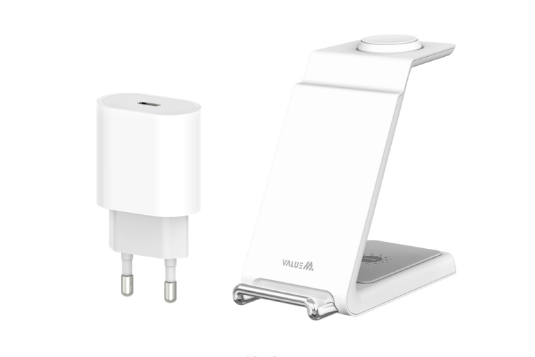 애플 정품 20W USB-C 충전기(케이블 미포함) + 밸류엠 3in1 고속 무선 충전 거치대