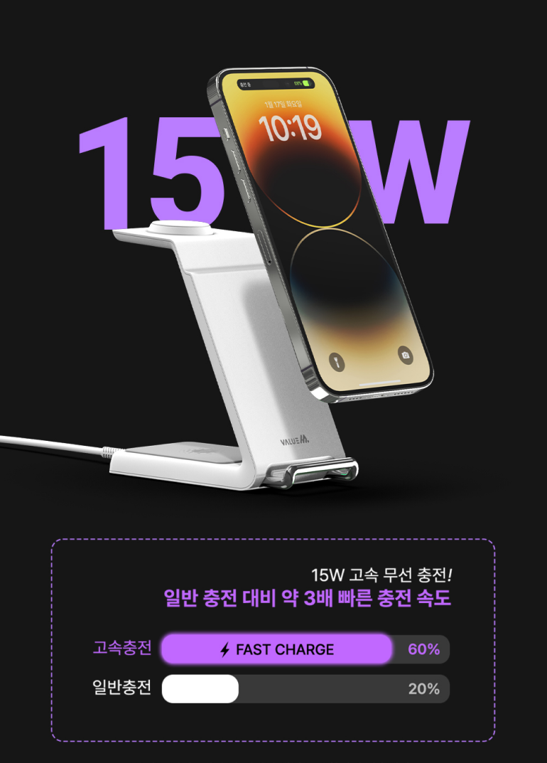 02밸류엠 3in1 고속 무선 충전 거치대