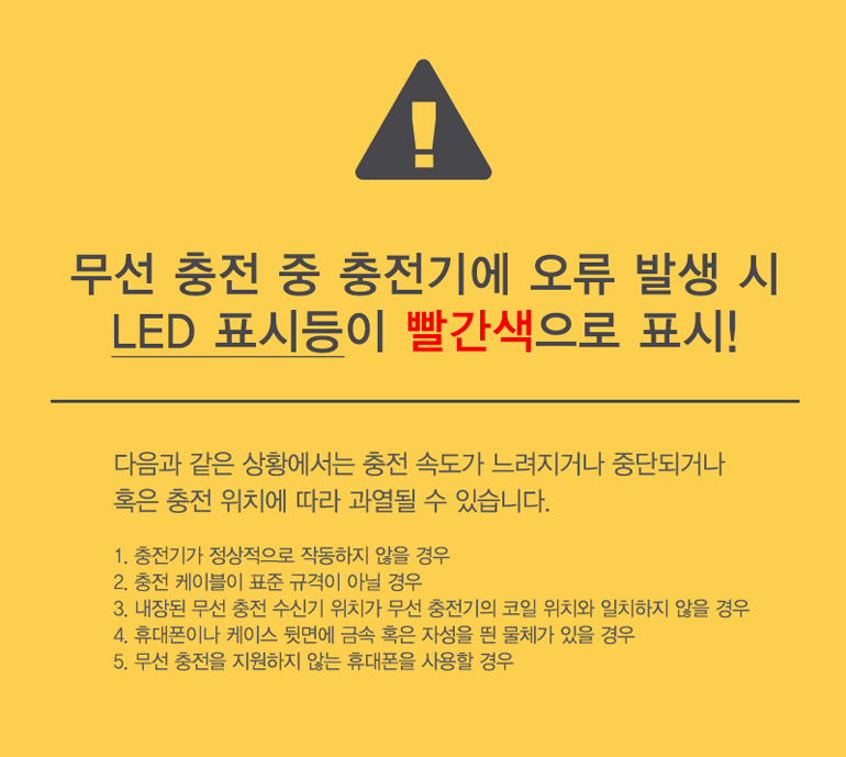 무선 충전 중 충전기에 오류 발생 시 LED 표시등이 빨간색으로 표시!