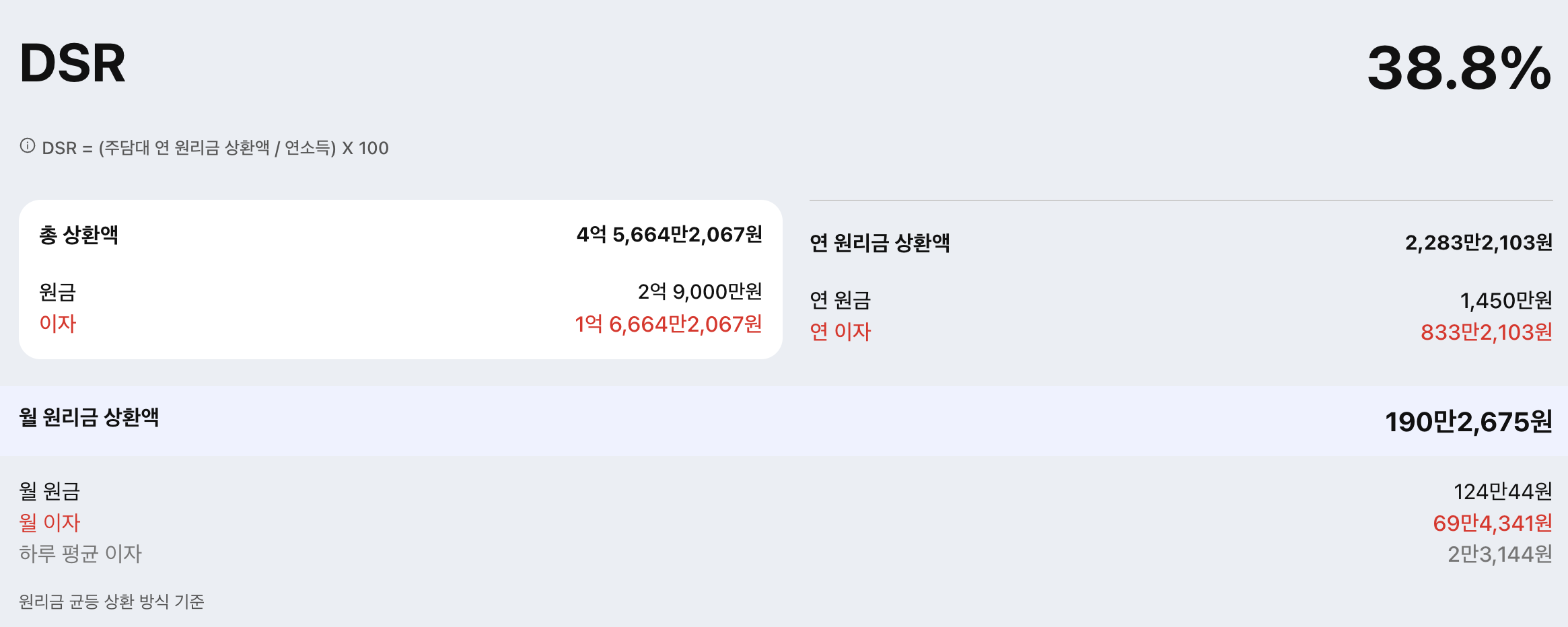 - 최종 DSR 비율: 38.8% (40% 이내로 대출 가능!)