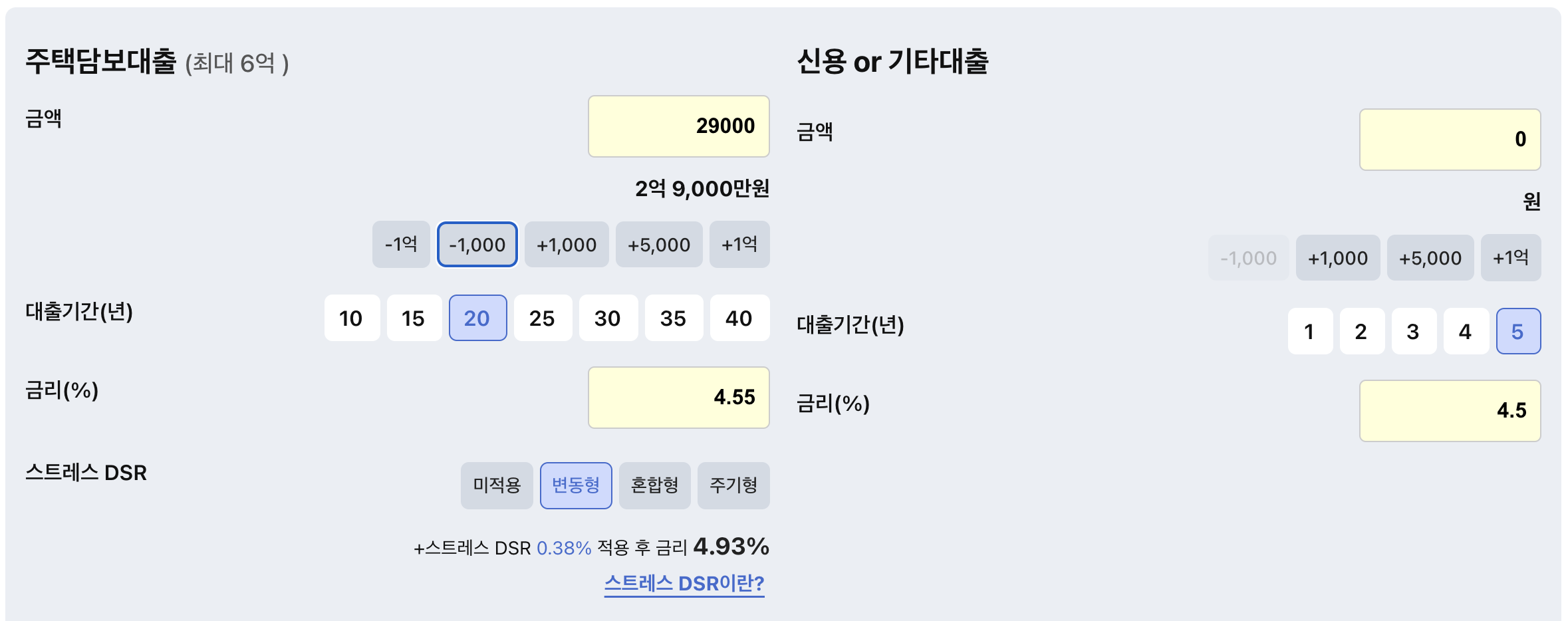 - 스트레스 DSR: 변동형 선택 (적용 후 금리 4.93%)