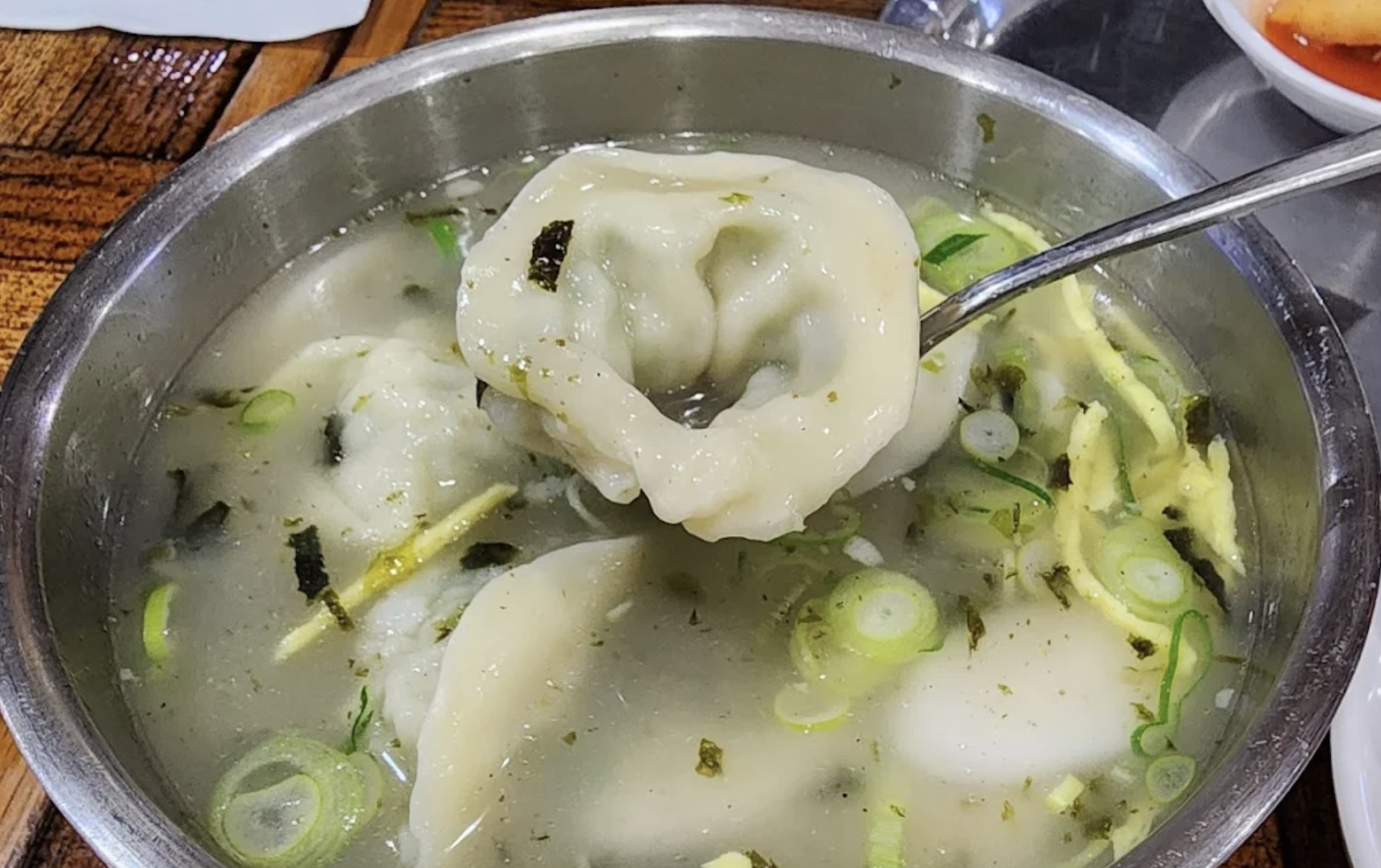 만두소에 무가 들어간다는 점이 이 집만의 독특한 특징인데요, 이 무가 만두 전체의 맛을 좌우하는 핵심 재료라고 할 수 있어요. 씹을 때마다 나오는 달콤하고 아삭한 식감이 고기의 기름진 맛과 절묘하게 어우러져 부담 없으면서도 풍부한 맛을 만들어냅니다.