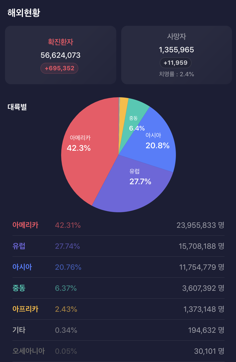 코로나 해외 확진자 현황