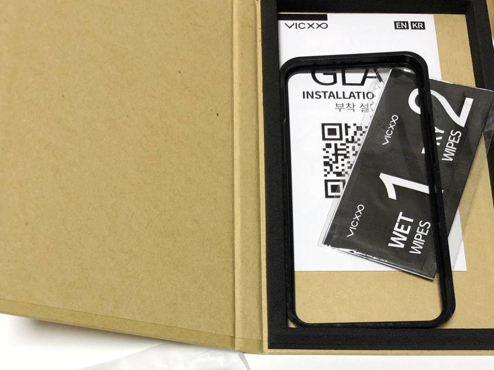 부착 설명서와 부착전 닦을 수 있는 티슈가 들어있다.