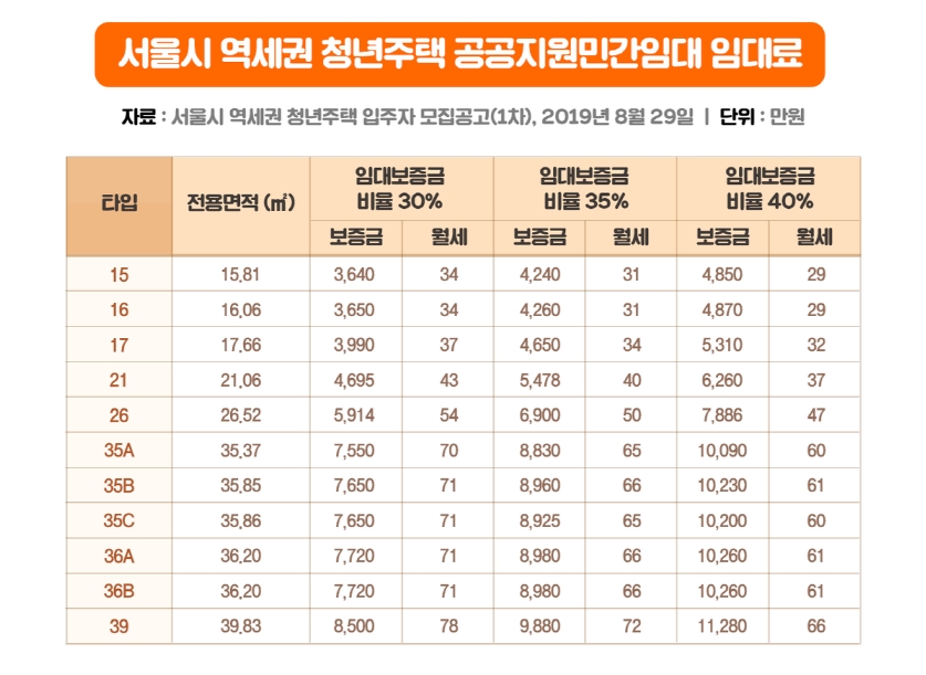 출처 : 서울시 주거 포털 및 청년 주택 모집 사이트